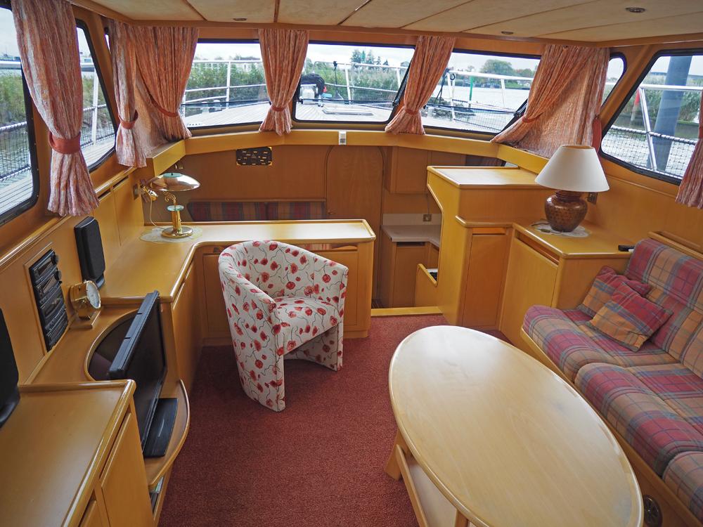 Boegschroef, generator, vuilwatertank, walstroom, airconditioning, stuurautomaat, A.I.S., etc. Fraai in gestoomd beuken betimmerde Altena Look 2000 Luxe.
