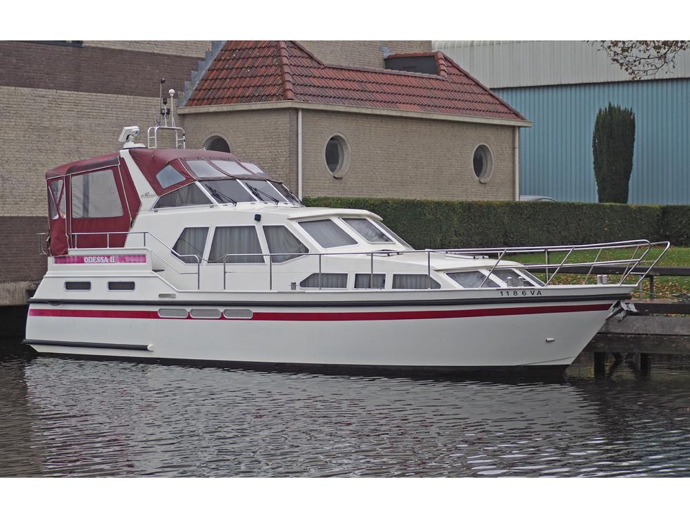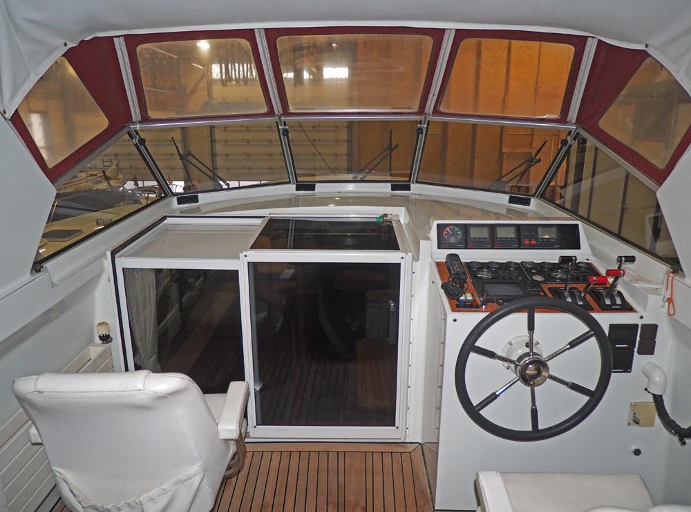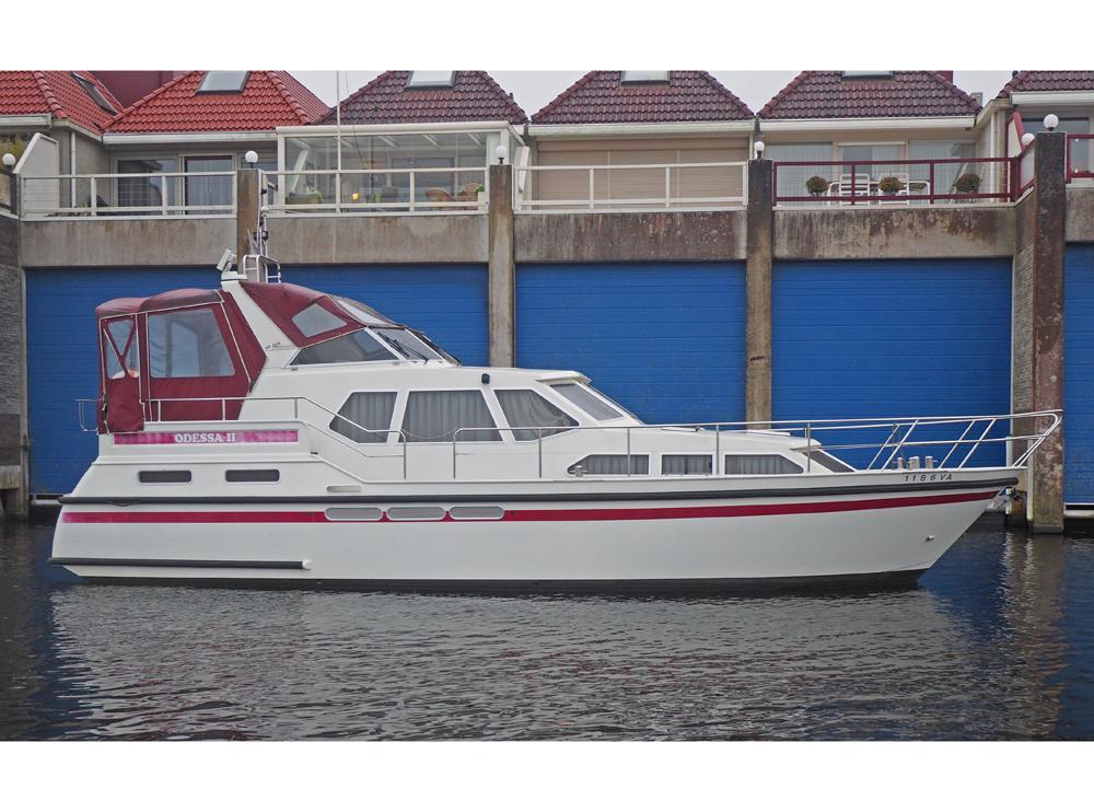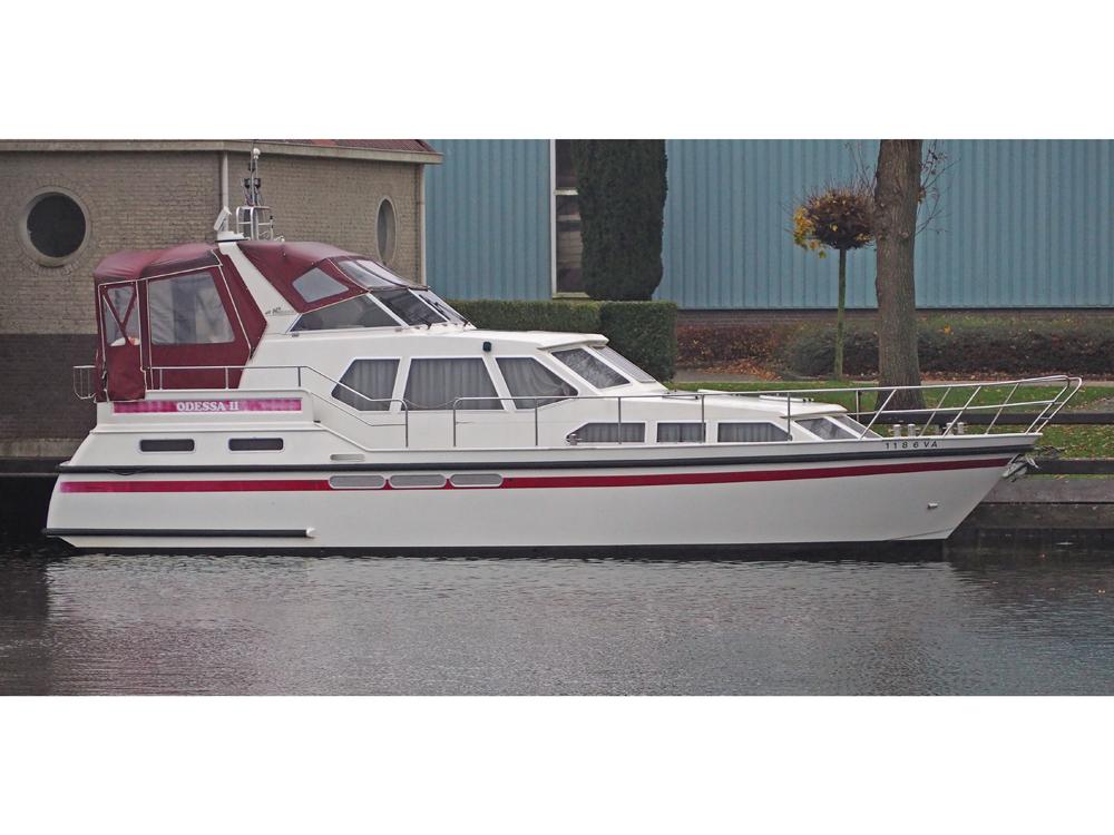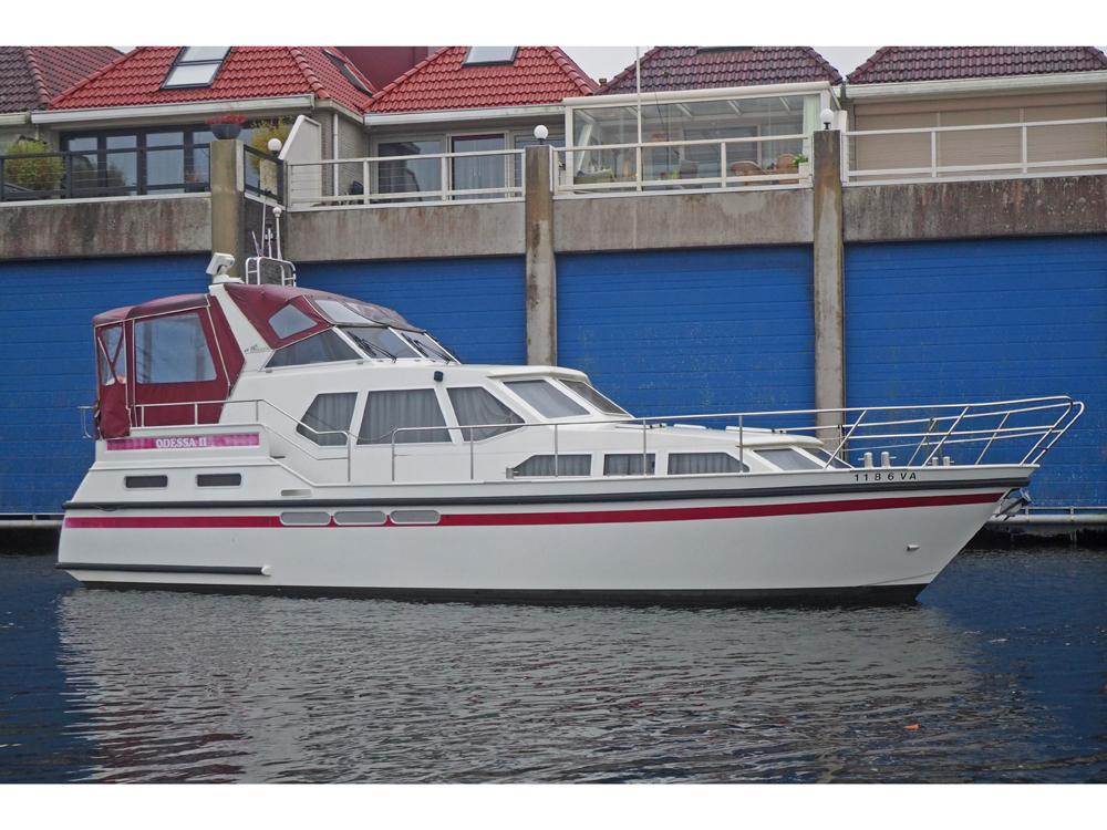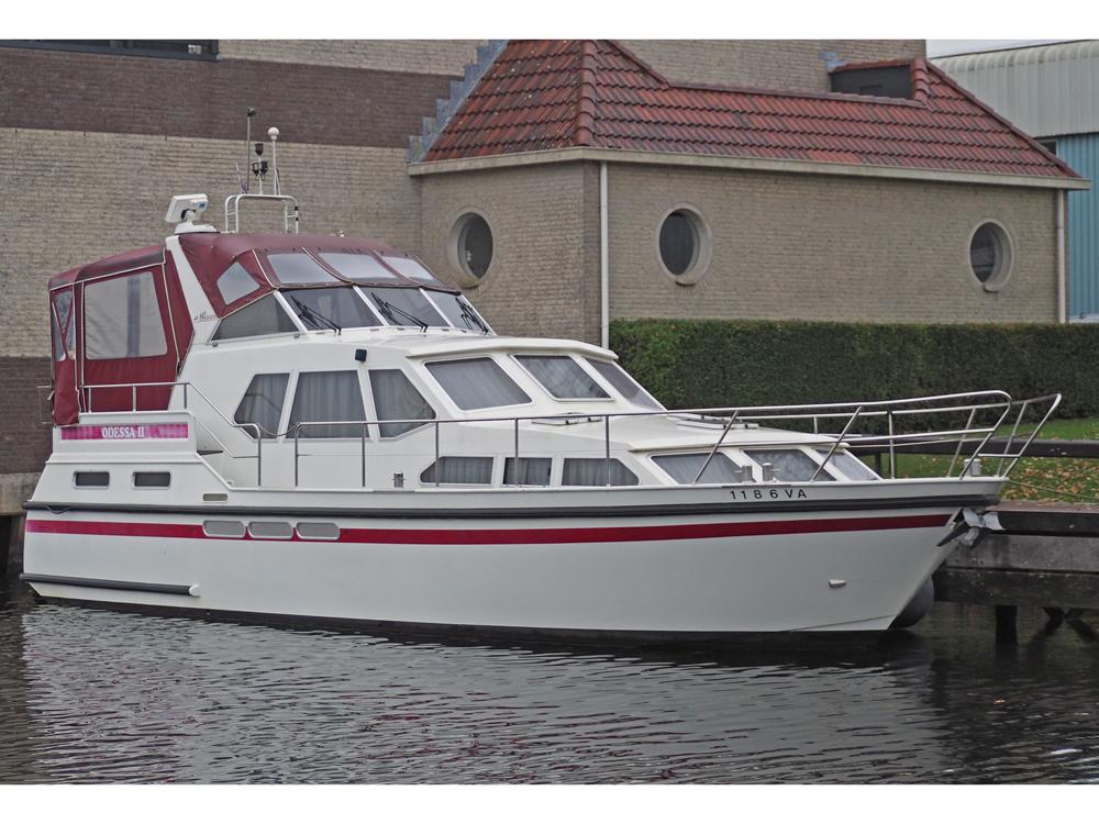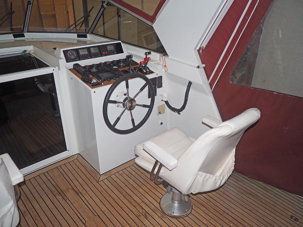 Boegschroef, generator, vuilwatertank, walstroom, centrale verwarming, stuurautomaat, etc. Fraai in kersen betimmerd snelvarend motorjacht geschikt voor lang verblijf aan boord.