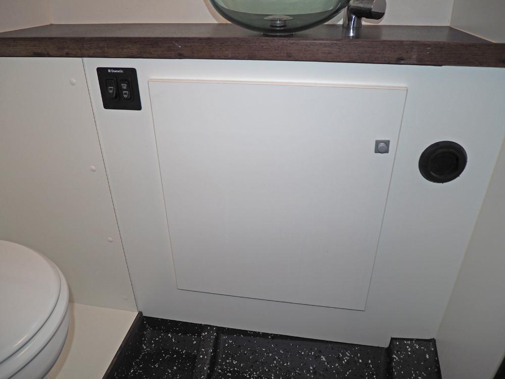 - Toilet room with an electric toilet and sink